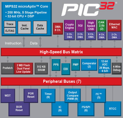 It has replaced the original M4K CPU with a MIPS microAptiv core, creating what will be known as PIC32MZ.